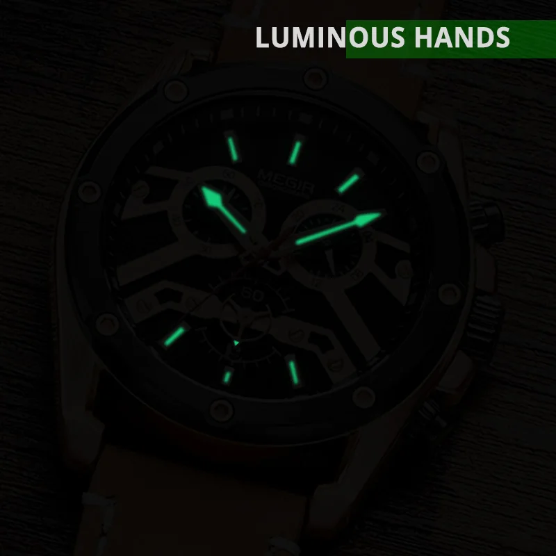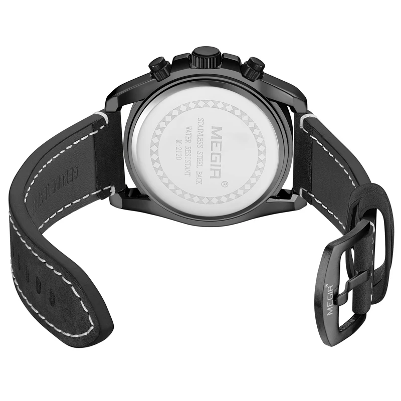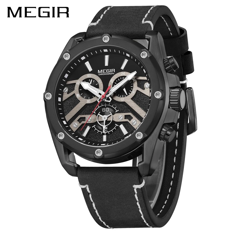 MEGIR Chronograph Sports Watches Men Fashion Top Brand Waterproof Leather Strap Quartz Wristwatches