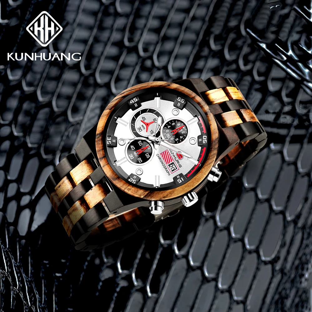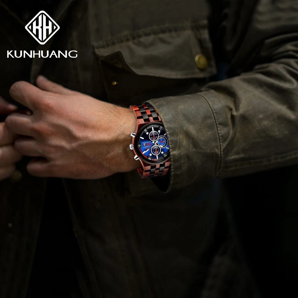 Hot Sale Wholesale Custom Men Wood Sport Watch Vintage Leather Quartz Clock Wooden Sports Hot Selling Chrono