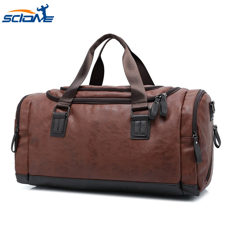 Portable Travel Tote Large Weekend Bag Crossbody Handbag Gym Bag Leather Sports Bags Big MenTrainin