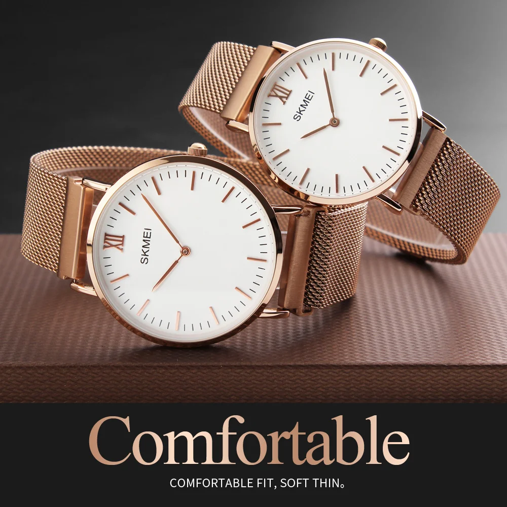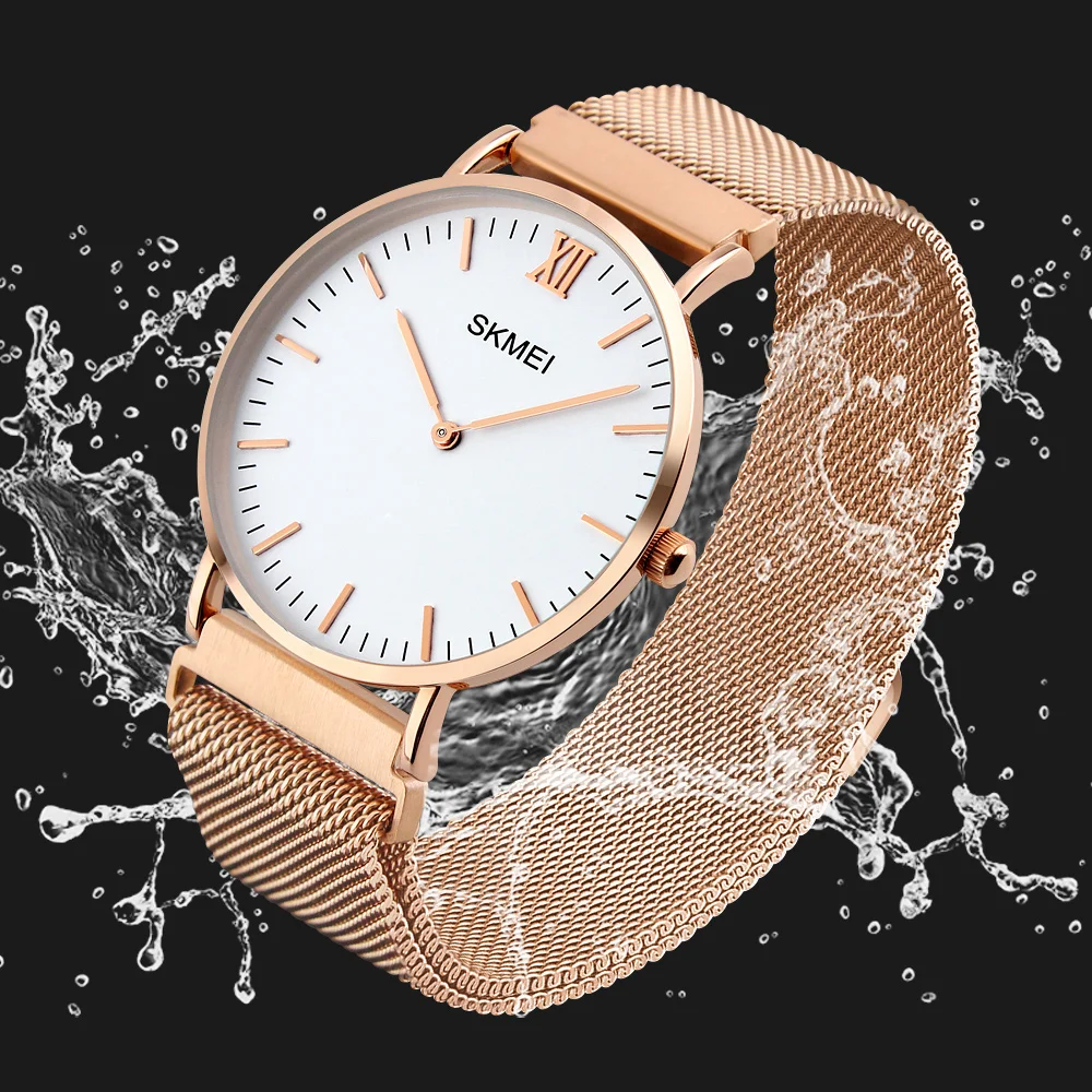 Skmei Golden Watches Men Quartz Fashion Casual Watch Full Steel Women Lover Couple Ultra Thin Water