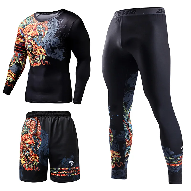ZRCE Chinese Style Men's Tracksuit Gym Fitness Compression Sports Suit Clothes Running Jogging Spor