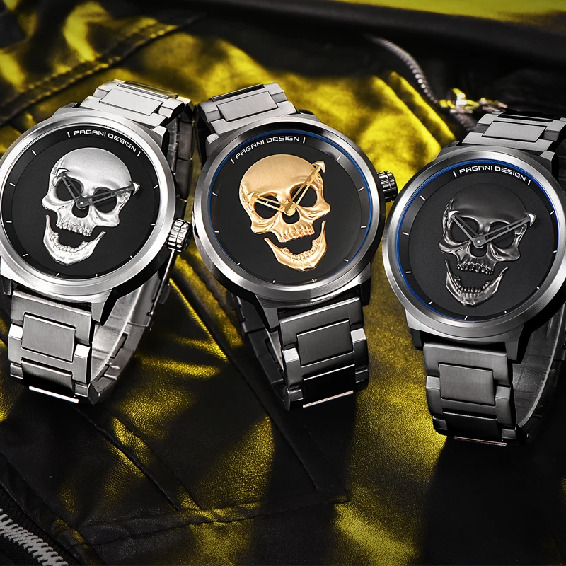 Best PAGANI design Luxury Brand Full Stainless Skull Bone Biker Punk stylish sports quartz watch Male Re