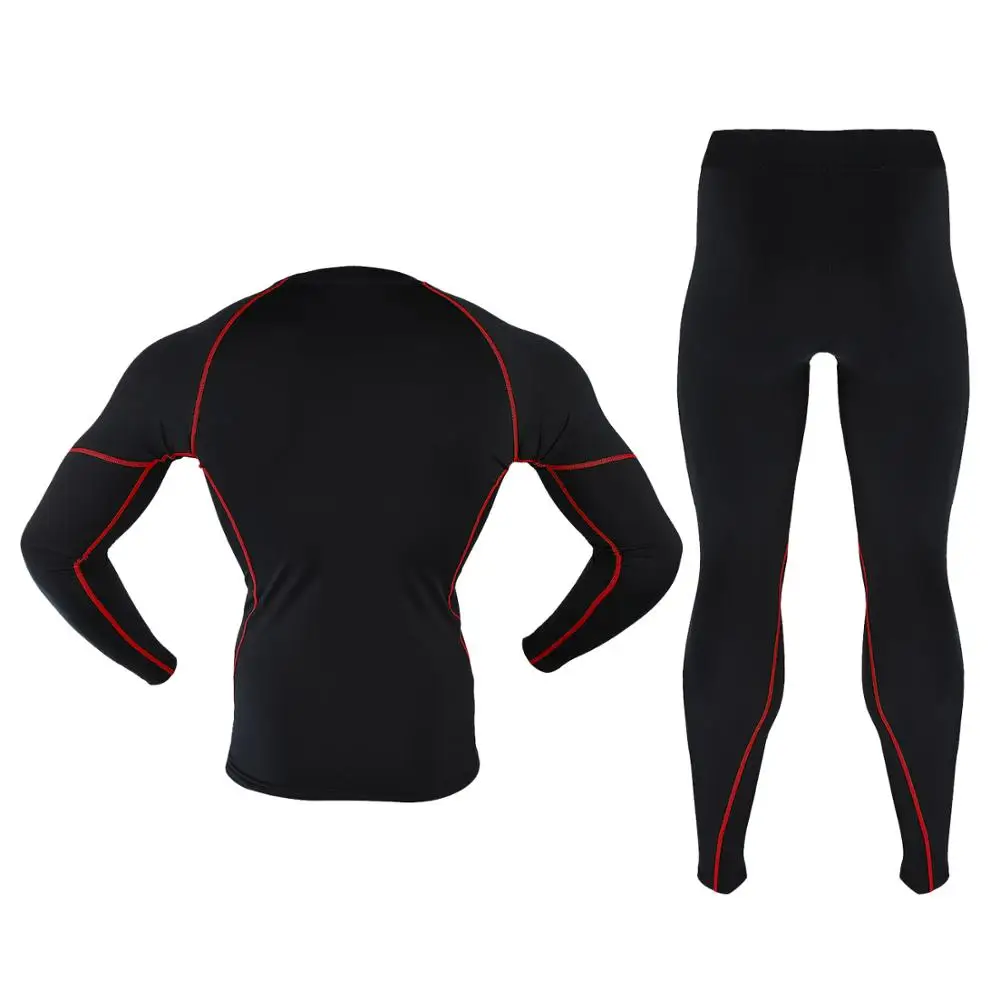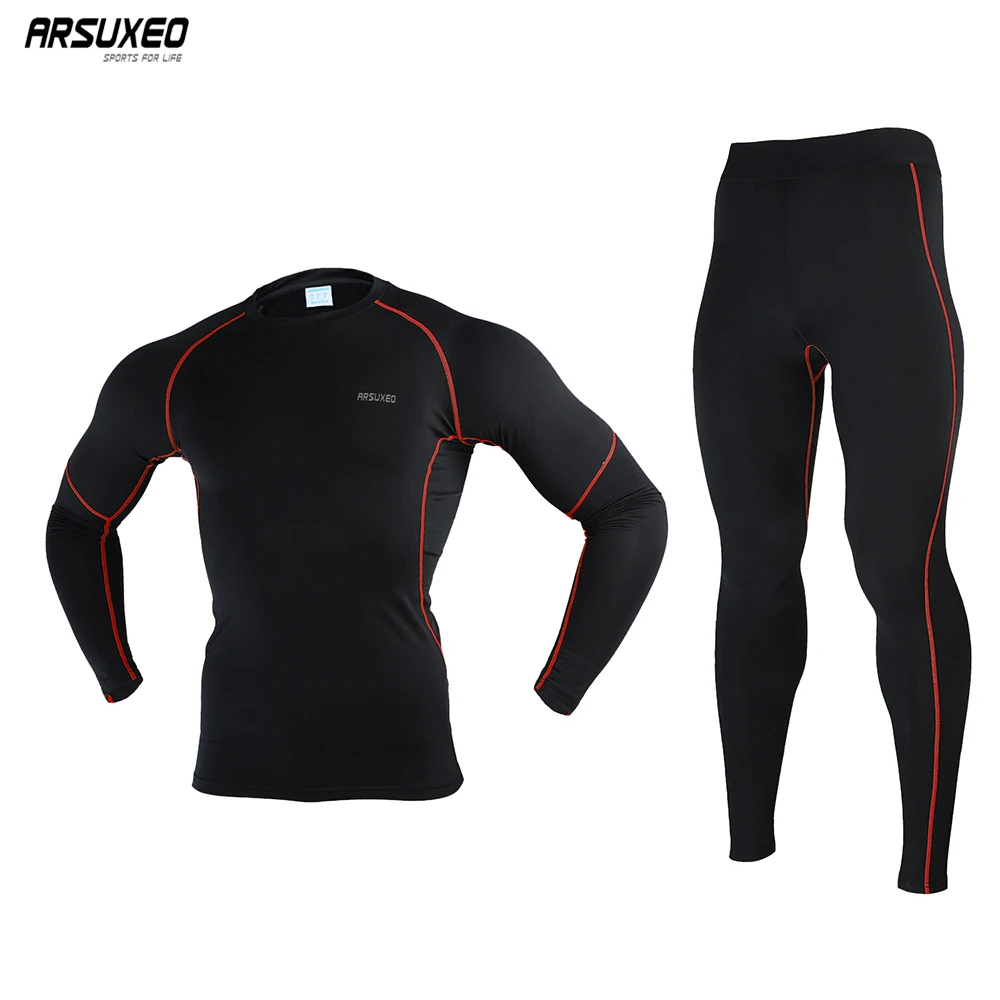ARSUXEO Men's Winter Running Set Sport Slim Fit Warm Up Fleece Base Layers Shirts Tights Sports Sui