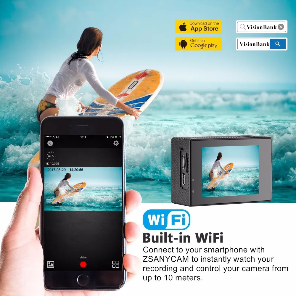 VeFly 4K Ultra HD sport action camera the waterproof Wi-Fi go pro cam with Anti-Shake electronic GY