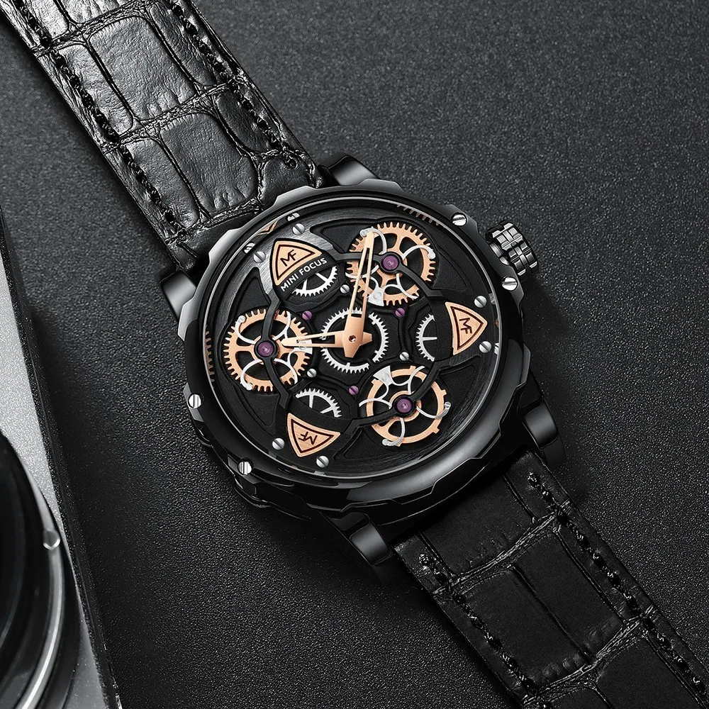 MINIFOCUS 3D Hollow Creative Watch Men Rotating Wheel Design Sports Watches Mens 2019 Luxury Brand
